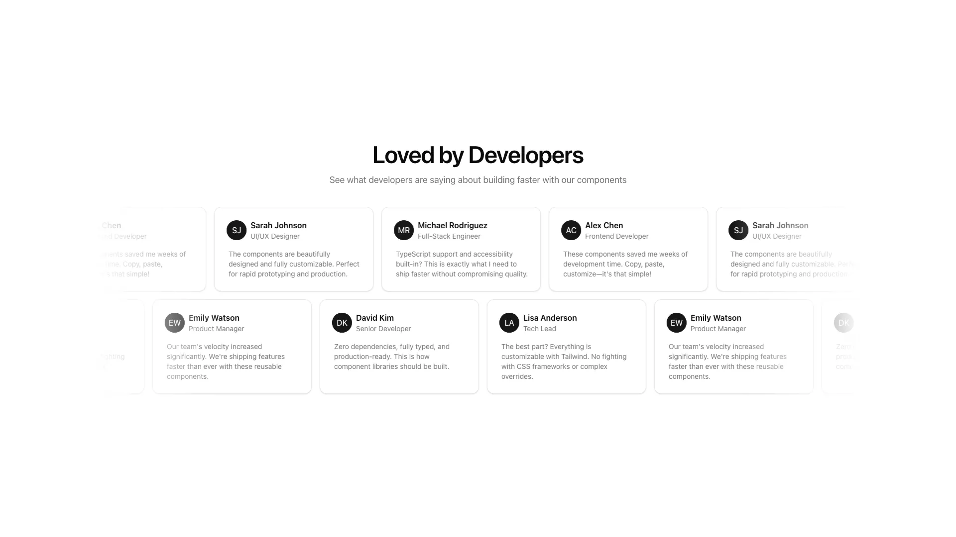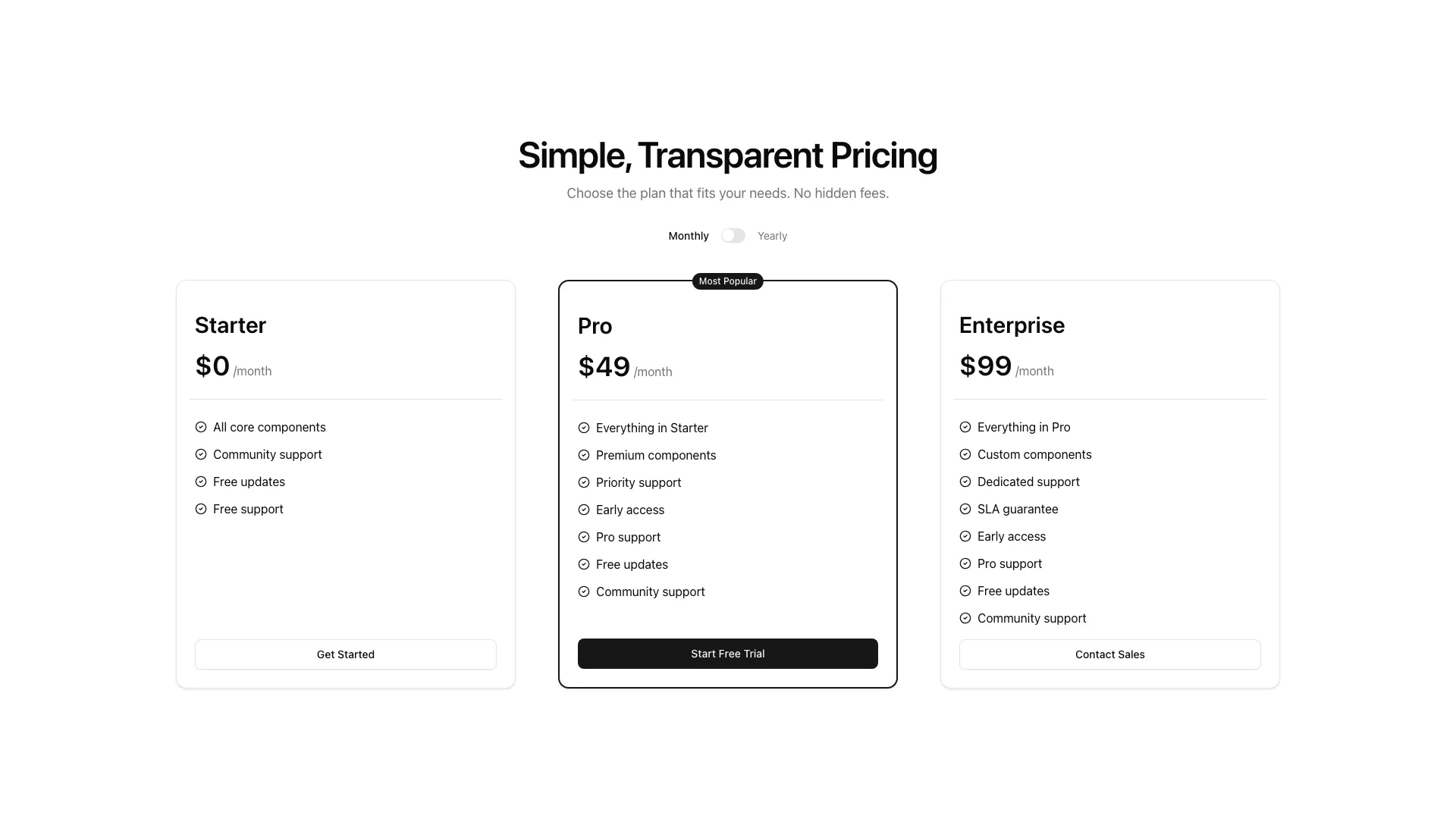 Get notified when we release new blocks, templates, and features. No spam, just updates that help you ship faster.